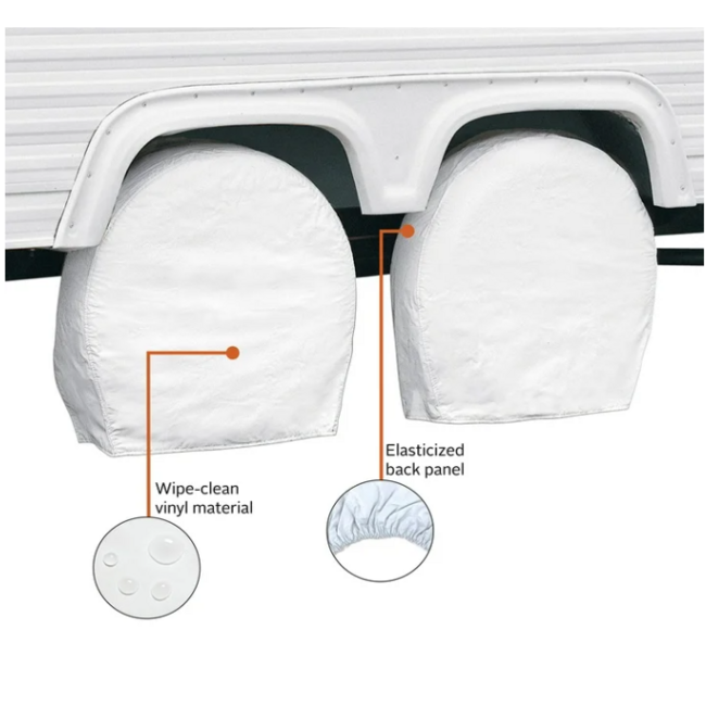 - Protects tires and wheels from sun damage, rust and dirt when your RV is parked